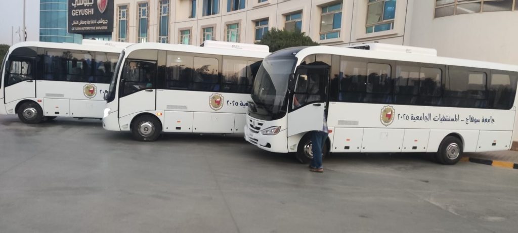 وأوضح الدكتور حسان النعماني أنه تم شراء ٢ أتوبيس كبير سعة ٥٠ راكبًا، من إنتاج شركة النصر للسيارات وعدد ٣ أتوبيسات ميني باص سعة ٣٣ راكبًا، من إنتاج شركة الجيوشي للسيارات، وعدد ٣ عربات نصف نقل لخدمة الاحتياجات اللوجستية للمستشفيات الجامعية.