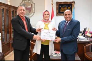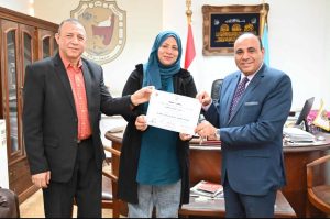 قام الدكتور خالد عمران نائب رئيس جامعة سوهاج لشئون خدمة المجتمع وتنمية البيئة والدكتور حمدي حسانين مدير مركز التنمية المستدامة بجامعة سوهاج بتكريم كل من الدكتورة أسماء قدري والدكتورة شيماء محمد مصطفى على مجهوداتهم في التدريب للمشاركين بدورة ” حساب البصمة الكربونية وكتابة التقارير” والتي عقدها المركز بحضور عدد من منسوبي الجامعة وهيئات ومؤسسات المجتمع مثل الصحة والبيئة والتعليم وشركة المياه والصرف وبعض الشركات الخاصة العاملة بمحافظة سوهاج.