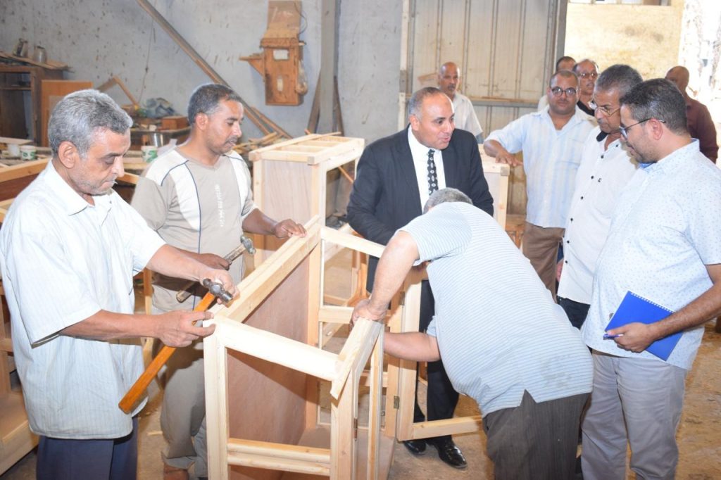 في اطار توجهات الدكتور حسان النعماني رئيس الجامعة تفقد الدكتور خالد عمران نائب رئيس الجامعة لخدمة المجتمع وتنمية البيئة سير العمل بورشة النجارة بمقرها بالحويتي، وذلك لمتابعة الأداء بورشة الإنتاج والعمل على رفع كفاءة انتاجها ، لتقديم عدد من المخرجات تناسب احتياجات المؤسسات التعليمية بوجه خاص والسوق المحلى بوجه عام، وتتماشى مع الاحتياجات المستقبلية لتطوير الأداء بها .