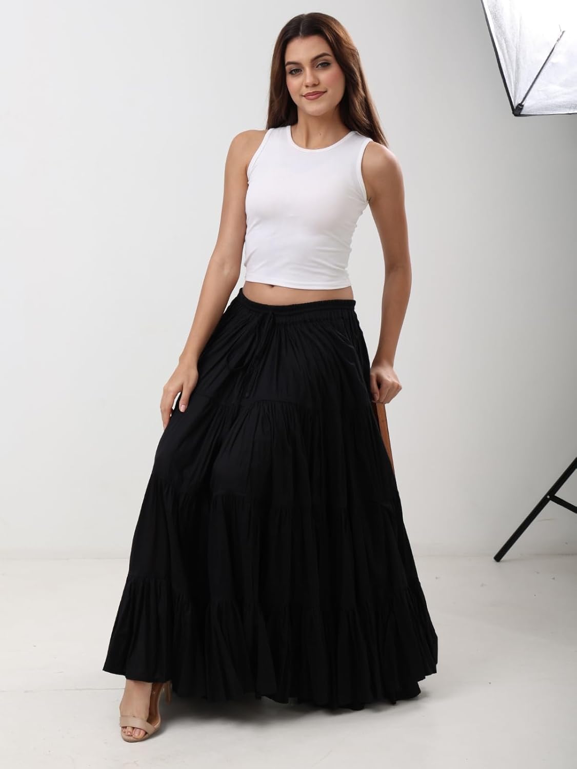 | Style Name | Maxi Flared Skirt With Elastic Drawstring |