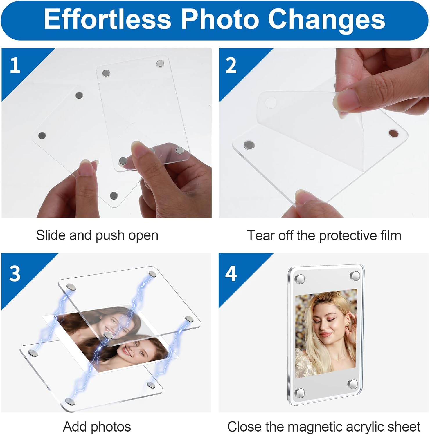 ✔ Superior Clarity & Protection: The premium acrylic material offers higher transparency and better UV protection compared to standard plastic frames, ensuring your photos look their best and are shielded from damage.✔ Unmatched Value with a Large 27-Pack: This set provides an extensive collection of frames, offering significantly greater value than common 10, 12, or 24-packs. You receive enough frames to create a stunning, gallery-style display on any metal surface.Specifications:Material: AcrylicProduct Size: 3.54” x2.36” x 0.16”Quantity: 27 PackColor: ClearPackage includes: 27 Pack x polaroid magnet frameNote:Manual measurements may have slight variations.Color may appear slightly different due to lighting and screen settings.