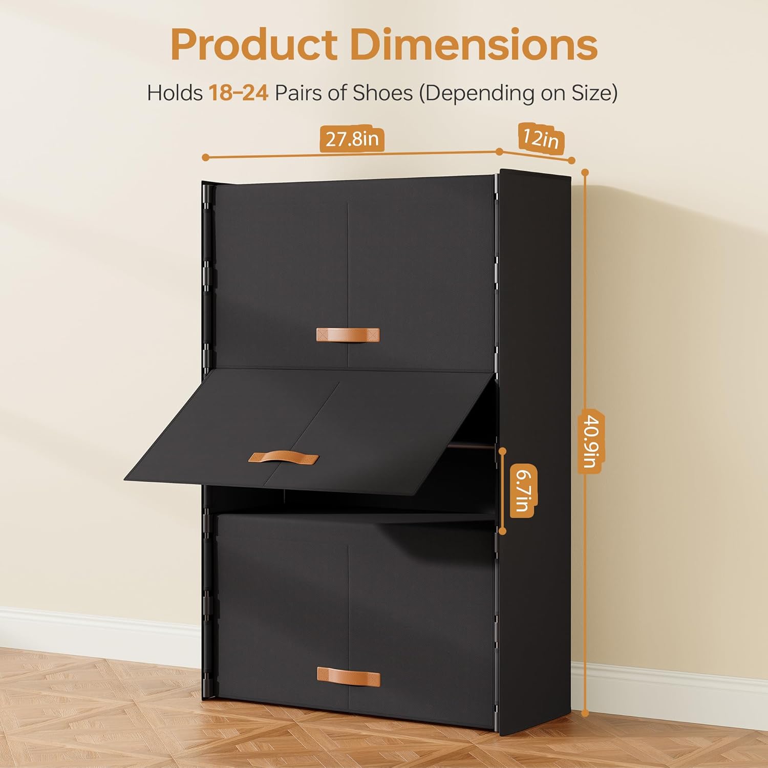Keep Your Entryway Tidy and OrganizedTired of tripping over shoes by the door? Searching for a storage solution that fits in narrow spaces while keeping everything in order? Our shoe storage cabinet for entryway is designed to solve your clutter problems. With its sleek and modern look, this cabinet offers hidden shoe storage that blends into your home decor while providing practical organization.Smart Design for Modern LivingThis shoe cabinet storage combines style and functionality. The slim profile allows it to fit in tight spaces like hallways, closets, or small apartments. The flip design offers easy access to your shoes while keeping them fully enclosed—away from dust, dirt, and pets. Whether you need a shoe rack for closet use or an elegant entryway cabinet, this unit delivers both form and function.Multi-Functional Storage SolutionNot just for shoes! Use it as a shoe dresser, a shoe shelf for accessories, or even as a mini storage unit for small household items. The closed shoe rack design ensures everything stays neatly out of sight, contributing to a clean and serene home environment. Perfect as entrance shoe cabinet or hallway shoe storage.Easy to Maintain & Built to LastMade from high-quality materials, this shoe storage cabinet is not only durable but also water-resistant and easy to wipe clean. Its sturdy construction ensures long-term use without sagging or wear. The sleek black finish complements any interior—whether your style is modern, minimalist, or contemporary.Ideal for Any HomeFrom apartment dwellers to large households, this shoe organizer for entryway offers the perfect blend of convenience and elegance. Use it as a closet shoe organizer, a hidden shoe rack in the living room, or a practical entryway furniture piece. However you use it, you’ll enjoy a cleaner, more organized home.Specifications:Material: Iron Frame + Non-Woven FabricColor: BlackDesign: 6-Tier, Space-SavingType: Shoe Storage Cabinet with Doors