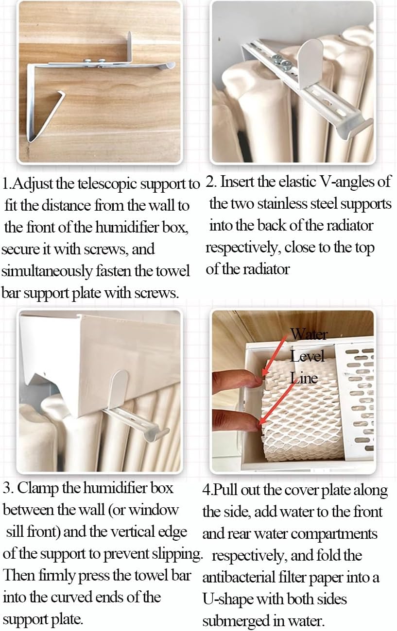 Transform your indoor environment with our All-Aluminum Radiator Humidifier, designed to enhance comfort and well-being in your home. This innovative device utilizes the warmth from your radiator to naturally evaporate water, increasing humidity levels without relying on electricity or filters. Say goodbye to dry skin, sore throats, and static electricity, and welcome a healthier atmosphere with minimal effort. Additionally, our humidifier features a handy towel bar, perfect for warming socks and gloves during those chilly winter days!Product Features:- Natural Humidification: Harnesses radiator heat for silent water evaporation, enhancing indoor air quality without noise or energy consumption.- Health Benefits: Helps alleviate discomfort from dry air, such as chapped lips and dry skin, fostering a more pleasant environment for you and your loved ones.- Eco-Friendly Design: Eliminates the need for batteries and disposable filters. The reusable and washable humidifying core is cost-effective and easy to clean.- Space Efficient: Compact design fits perfectly on your radiator, freeing up precious floor and table space, ideal for smaller rooms.- Versatile Usage: The integrated towel bar provides a warm area for drying laundry, ensuring your clothing remains cozy and ready to wear, even in winter.- User-Friendly: The easy top-fill design allows for quick refills with tap water, so there's no need for distilled water.Dimensions: Height: 11cm, Width: 14cm, Length: Available in 40/60/80cm.Package Includes: 1 x Radiator HumidifierUsage Tip: For best results, soak the humidifier mesh to enhance water absorption. Gently rinse the mesh to maintain optimal performance.