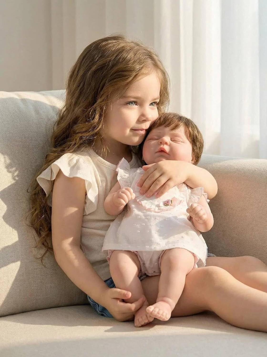 Our cute and lifelike reborn dolls are made of high quality materials (silicone vinyl, clothes, fiber hair, and other haccessories materials ), safe, non-toxic for your kids, pure environment-friendly materials with gentle and comfortable touch. The doll will come with outfits. Cute face, vivid expression, long and curled eyelashes, a pale peaches and cream complexion, natural pale pink lips, Adopted her. This little girl is so stunning and lovely that you will never want to put her down She fits into newborn sized baby clothing and is a lovely little girl. She is approximately 20 inches long and has Full Arms and Full Legs. Her body is a flesh coloured doe suede body and her arms, head and legs can be gently turned. Conforms to the safety requirements of ASTM F963 and EN71 for ages 3+ Application: Wedding gifts, Birthday gifts, festival gifts, children playmates, the elders' accompany toy dolls, collect lovers' collections , for nursing ect. Cloth body: It's all about the softness! The babies' shoulders and body are made of high-quality cotton, and the interior is filled with PP cotton; the arms and legs are made of gentle and confortable touch vinyl, and the limbs are not detachable. These dolls have no gender. They can sit and lie down easily but can't stand or take a bath.