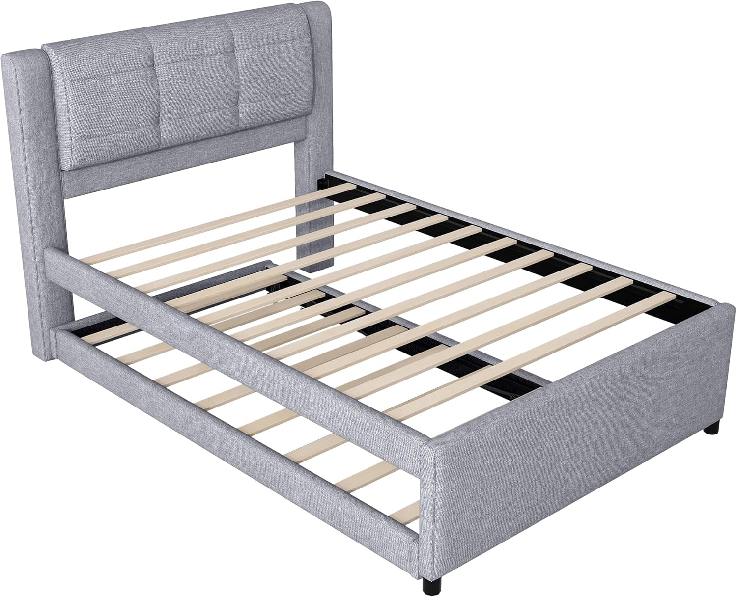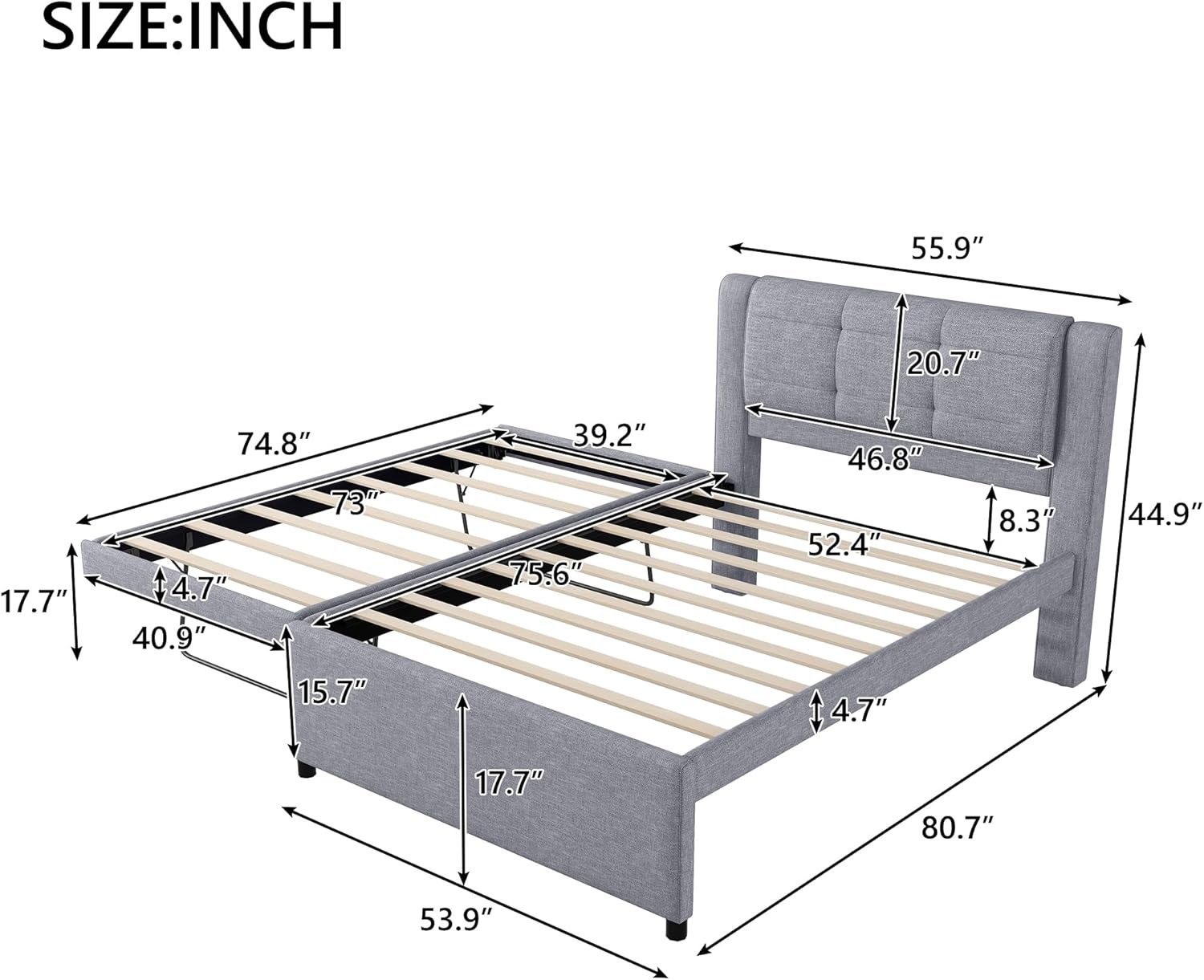 | Item Type Name | Ball & Cast Full Size Upholstery Platform Bed with Pop up Trundle,Extendable Bed Frame with Headboard & Wood Slats Support,Trundle can be Flat or Erected,Full to King Design,Space-Saving,Gray |