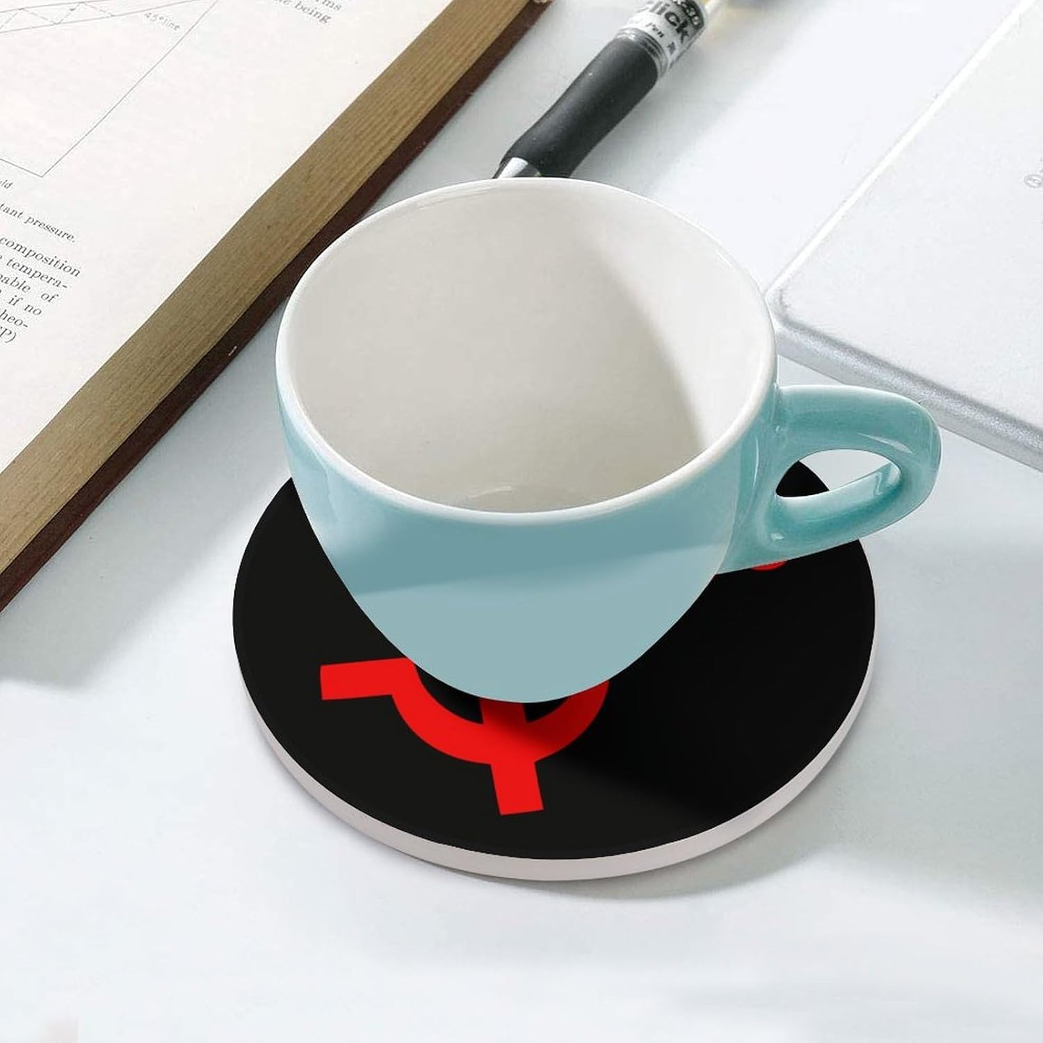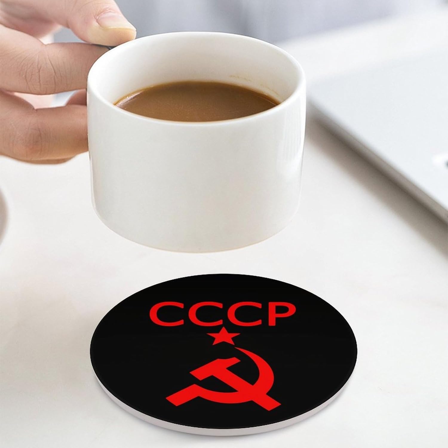 CCCP Star Soviet Union USSR Round Ceramic Coasters Print Drinks Absorbent with Cork Base for Home Decor Gifts 4 Inch