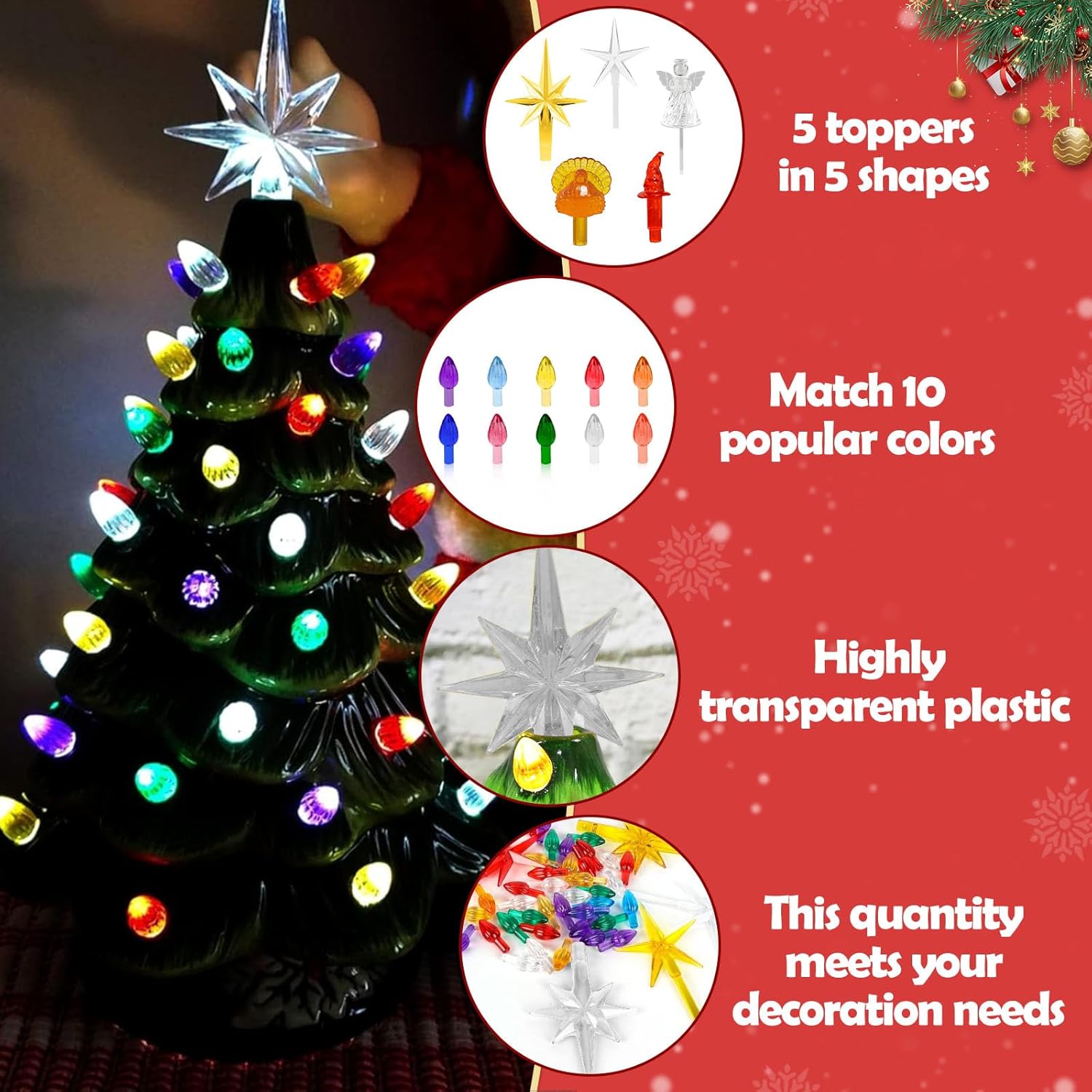 These replacement bulbs for ceramic christmas tree can reflect a variety of colors through the ceramic Christmas tree, you can try to create your own style, and these ceramic tree lights can add a point of brilliance to your Christmas tree.