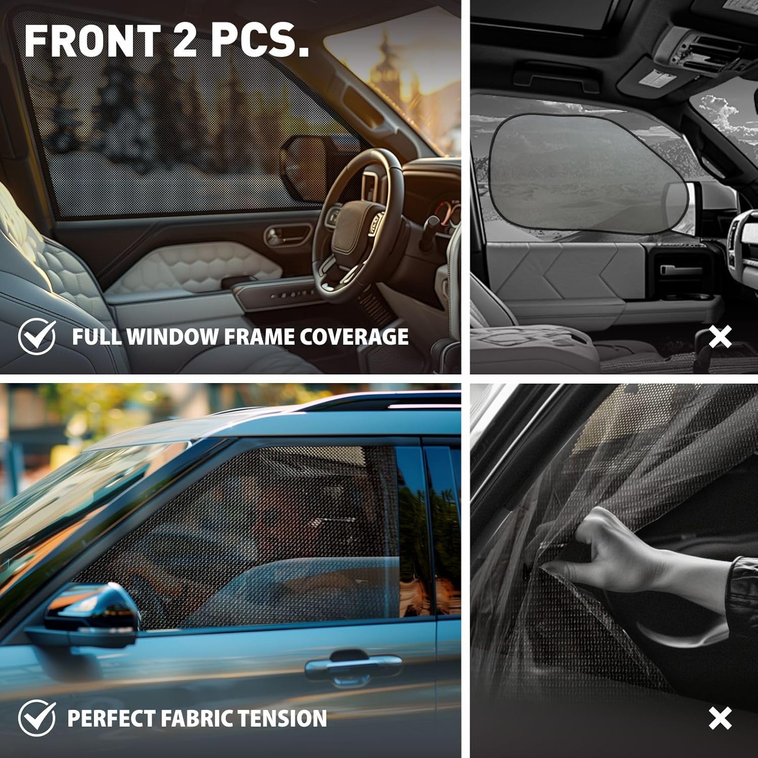 Keep your car’s interior cooler and more comfortable with sun-blocking window shades for your vehicle’s interior. If your car has been sitting outside in the sun all day or you’re going on long drives chances are that front seat is getting pretty hot. That’s why we developed these CLIM ART Side Window Sunshades that help block out the sun without blocking airflow, so they can stay cooler and more relaxed no matter how long the ride. Product Details: Front Window Sunshades Designed to Fit Cars, Trucks, and SUVs Magnetic Installation with Optimal Coverage Block UVA and UVB RaysImproved Bug and Dust Protection Color: Traditional Black Simple, Fast Installation Check Above for Brand Availability. Get this 2-piece interior sunshade set today for your vehicle and keep your passengers, kids, or pets more comfortable on long rides. Please make sure you are in compliance with all state and local laws while using these sun shades.