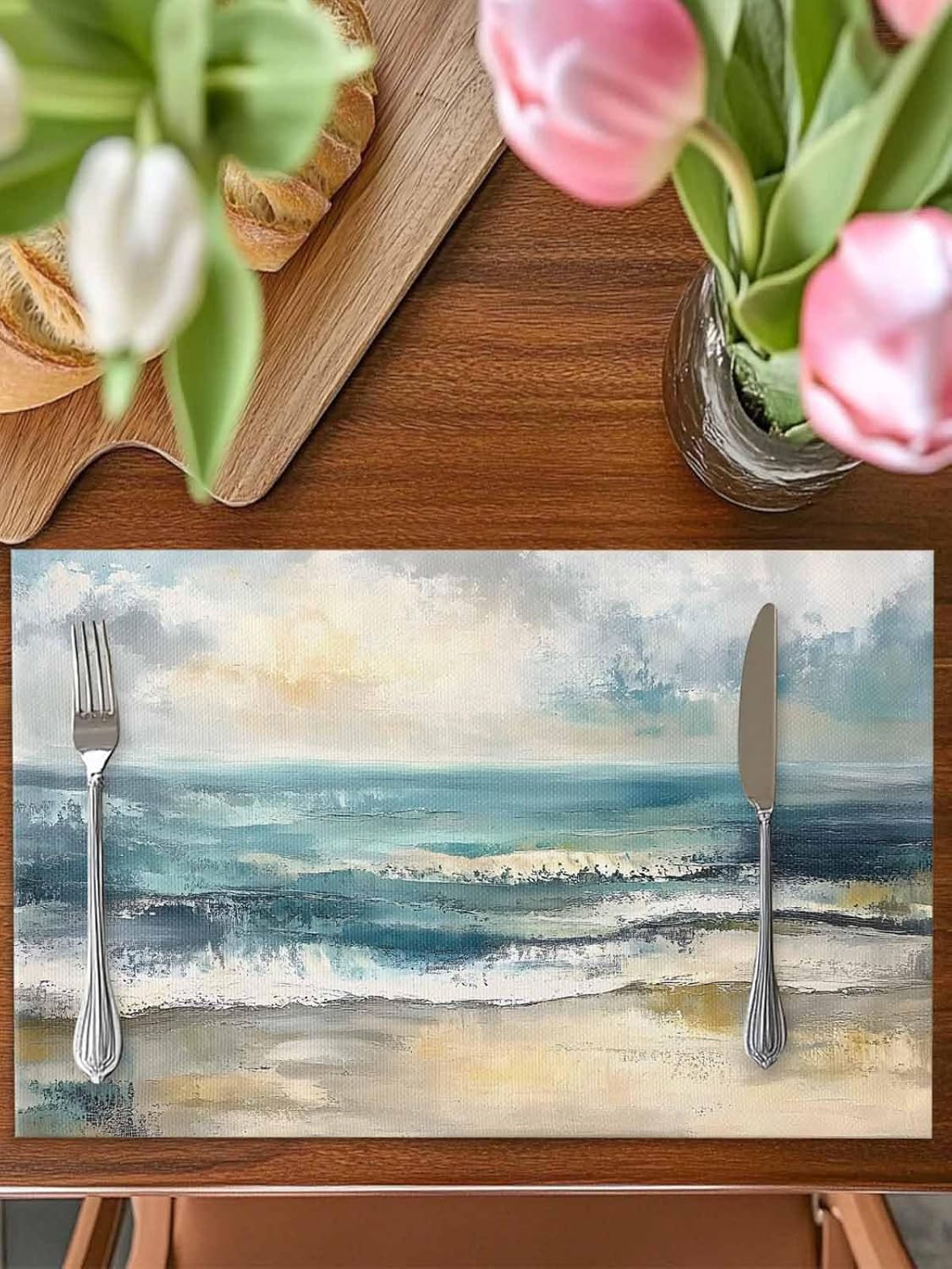 PLACEMATS FOR KITCHEN TABLE INFORMATION:Kitchen Placemat Material: Cotton linen with polyester.Dining Placemat Size: Each fabric placemats is 13 x 19 inches.DECORATIVE & FUNCTIONAL PLACEMATS FOR ROUND/SQUARE/RECTANGLE/OVAL TABLES:Soft and durability.Advanced high definition printing technology, not fading and doesn't bleed when washed.Personalized patterns can meet different style needs.All edges of the placemats are fully stitched and hemmed.Good match with wooden tables, glass tables, dining tables, farmhouse wooden dining tables.Machine washable placemats, easy to replace/keep and take care.RECTANGULAR PLACEMATS TIMELESS ARTISTIC DESIGN:Each design has its own unique style, suitable for various occasions;Pay more attention to crafts and materials;Providing our customers with good services.WIDELY APPLICATION PLACEMAT WASHABLE, PERFECT FOR:Everyday brunch/dinner use;Family gathering, banquet, graduation, birthday, housewarming, party, BBQ, camper;Valentine's Day, Easter, Christmas, Thanksgiving, Halloween, etc, holiday parties;Shabby/chic/vintage/rustic/modern/chinese/country/farmhouse/boho wedding/baby shower/bridal shower.Holiday Placemat: Christmas placemats, thanksgiving placemats, fall placemats, halloween placemats, pumpkin placemats is provided.Pet Placemats: Cat/dog placemat, cat/dog food placemat, placemat for cat/dog bowls are available.WARM TIPS:Creases to appear during transportation is normal, low-temperature ironing creases will disappear;There is an error of 0.3-0.5cm due to measured manually;Do not place placemats directly under hot objects (over 80 degrees Celsius);Due to different monitors and measurements, please allow little color.