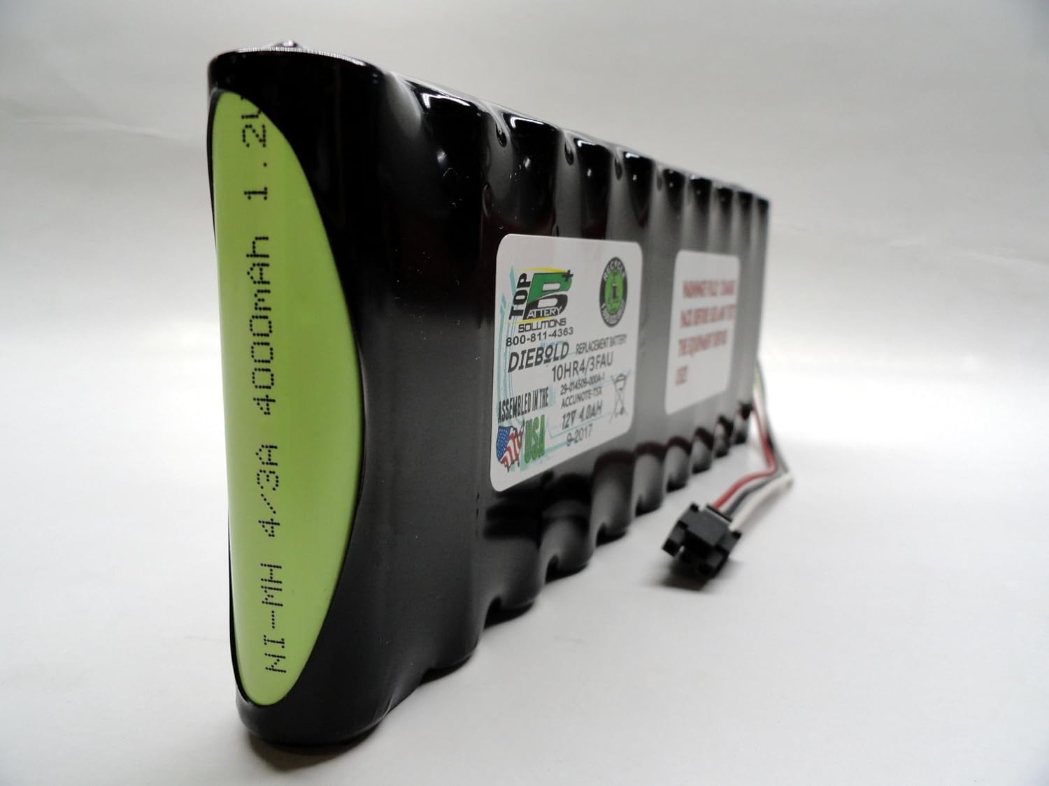 Product Description Diebold 10HR-4/3FAU 12V Ni-Mh Battery for Voting Machine Compatible with Diebold 10HR-4/3FAU, 29-014509-000A-1, TOUCH SCREEN VOTING MACHINES, ACCUVOTE-TSX, HHR-380AB27F10, H450AE-10DB Battery: Diebold 10HR-4/3FAU Battery Chemistry: NiMH – Nickel Metal Hydride Voltage: 12V Capacity: 4000mAh Size: 178.05 x 69.6 x 18.03 mm