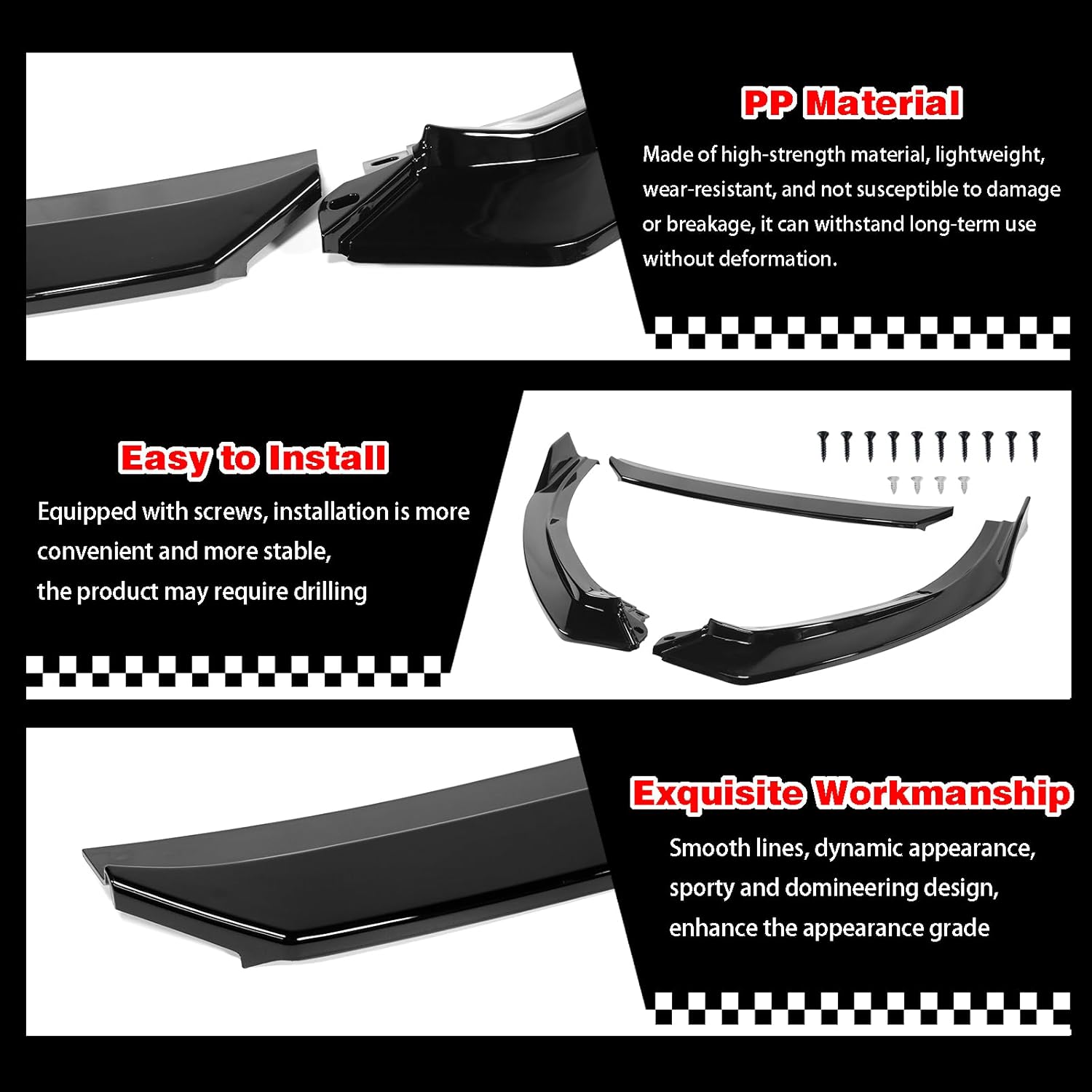 | Included Components | 1*Front bumper lip and Side Skirt |