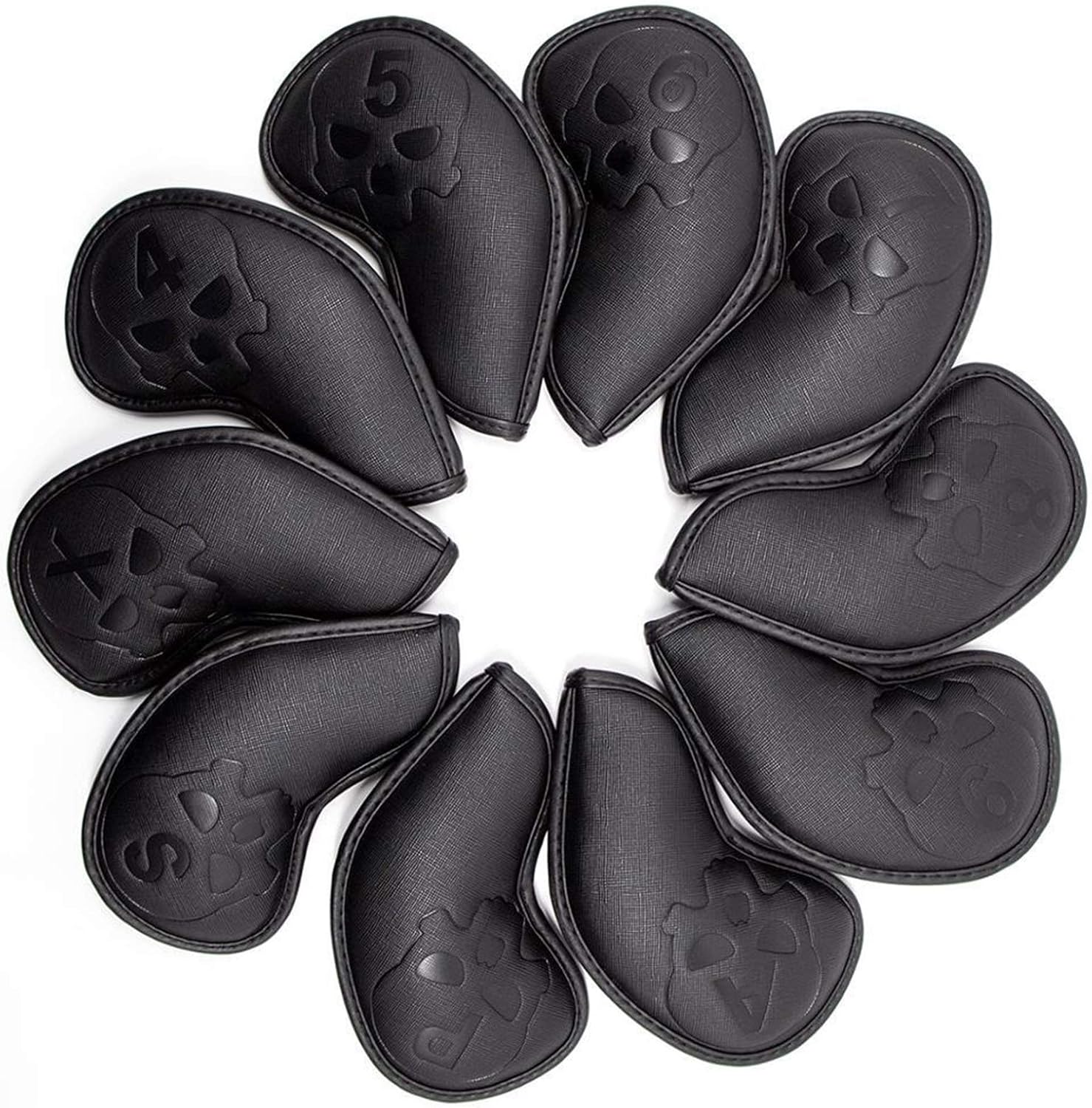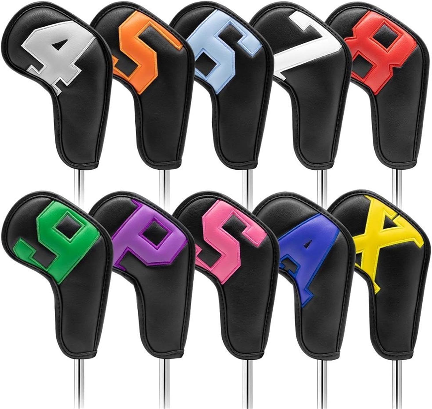 Easy find during play or travel,perfect choice for golf lovers.Standard size covers fit most club irons, protect your iron head all around, Best protection of your irons.▶Specification✔Product Name:Golf Iron Head Covers✔Material:Synthetic Leather (outer); Velvet (inner)✔Color:Black+✔Weight:About 350g/set (4/5/6/7/8/P/S/A/L 10pcs/set)▶Keywords: golf club iron covers, golf club iron cover, golf club cover, golf club headcovers, golf headcovers, golf iron headcover set,golf club iron covers