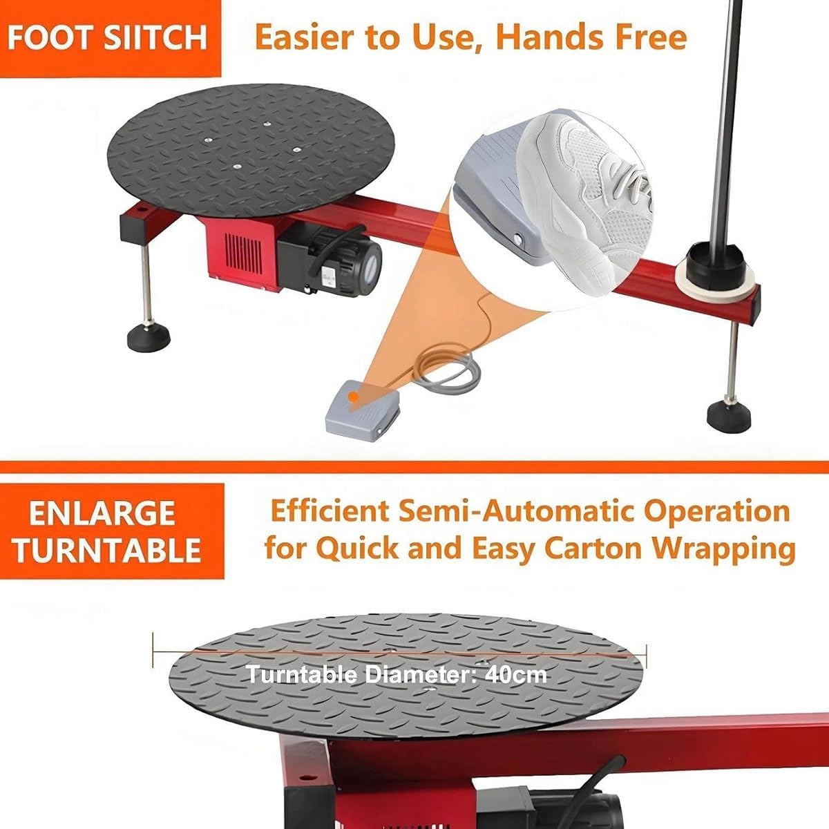Are you frustrated with time-coming manual wrapping that drains your resources? Discover the efficiency of our dual-mode electric stretch wrap machine, designed to enhance your packaging ps. This tive machine is perfect for both heavy-du applicats and everyday use, making it accessible for anyone. With the abili to speed up pallet wrapping by 50%, our electric stretch wrap machine not only saves time but also reduces film waste by 30%. This means you can wrap more loads in less time while ering that your products remain secure and stable during transport. **Key Features:** - **Robust Construct:** Made from steel, plastic, and nylon, this machine is built to withstand the rigors of daily use, ering long-lasting performance. - **Efficient Design:** With a power output of 25W and a speed of 30 RPM, it allows for quick and efficient wrapping, perfect for warehouses and shipping centers. - **Versatile Size:** The turntable can accommodate loads up to 50kg (110.23 lb) and can wrap film heights of up to 70cm (28 in), making it suitable for a varie of packa sizes. - **Convenient :** The user-friendly design includes an auxiliary turntable for added support, making it easy for anyone to operate without prior experience. **Specificats:** - Color: Red/Black - Power Cord Length: Approximately 1.5m (4.9 ft) - Turntable Diameter: 40 cm (15.7 in) - Material Shaft Height: 45 cm (17.7 in) - Dimeons: 83 x 40 x 65 cm (33 x 16 x 26 in) - Weight: 15 kg (33 lb) **Packa Includes:** - 1 × Electric stretch film wrapping machine - 1 × Auxiliary turntable Transform your packaging ps with our electric stretch wrap machine, where efficiency meets . For any inquiries, feel free to reach out, and I’ll respond within 24 hours. Embrace a smarter way to wrap and secure your products today!