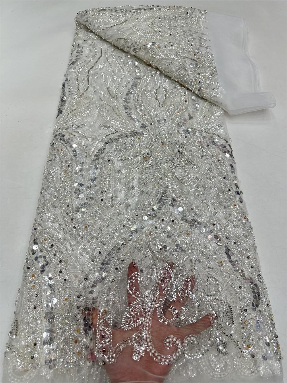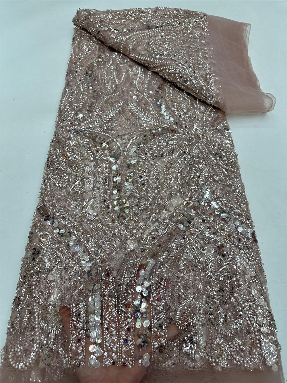 Introducing our High-end Heavy Beaded Fabric African Sequins Groom Embroidery French Lace for Sewing Wedding! This exquisite fabric is of the highest quality and boasts delicate tassels that are sure to add an extra touch of glamour to any garment. Each order comes with 5 yards of the finest material, providing ample fabric to bring your creative vision to life. Crafted with meticulous attention to detail, this lace fabric is adorned with eye-catching sequins and beads, which effortlessly elevate the overall look and feel. The intricate design and superior construction make this fabric truly unique, and perfect for those who appreciate luxury and elegance. Whether you're creating a dress for a special occasion or simply looking to add a touch of sophistication to your wardrobe, our French Gauze mesh Lace Fabric with Sequins and Beads is an ideal choice. So why wait? Order now and experience the beauty and quality of this must-have fabric for yourself!