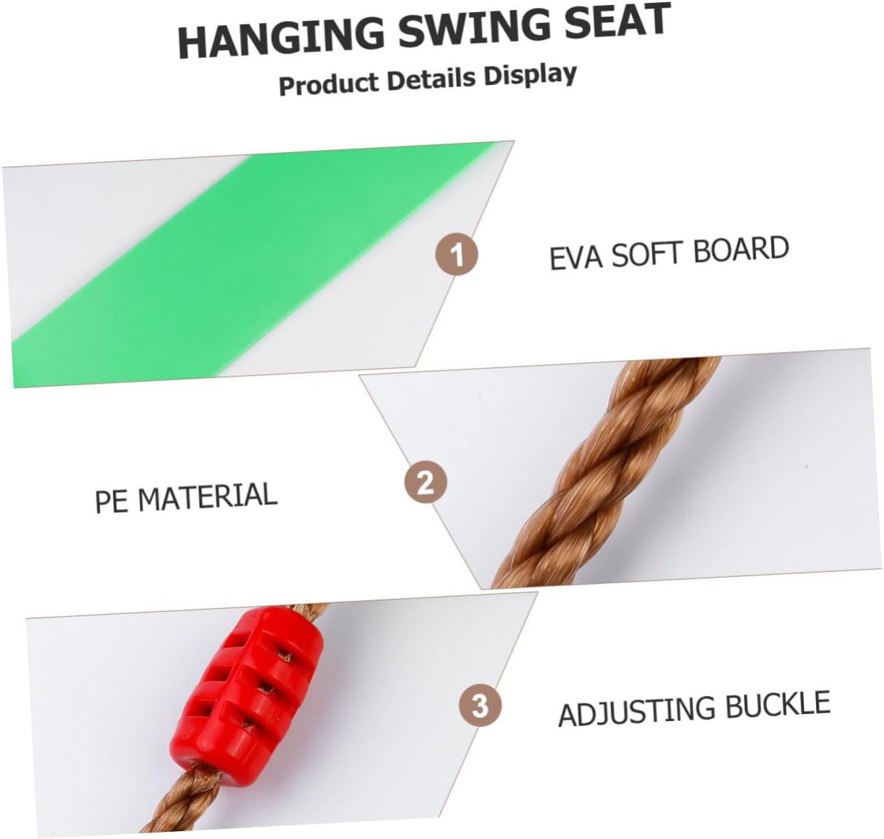 Package Include 1 x swing Characteristics -Material: EVA+PE rope Swing Seat with Rope -This swing has a seat and extremely strong ropes Playground Swing. -It is made with craftsmanship using Hanging Swing Seat. -You and the would feel so and secure using it Outdoor Playground Swing. -It have impressive durability since that it is our purpose from the outset Playground Swing . -This swing could easily be installed anywhere suitable, after which it would bring you so much fun Hanging Tree Swings.Goods DescriptionOutdoor Swing Seat This swing has a seat and extremely strong ropes.Outdoor Playground Swing It have impressive durability since that it is our purpose from the outset.Swing Seat with Rope It is made with craftsmanship using , which is why you and the would feel so and secure using it.Hanging Swing Seat This swing could easily be installed anywhere suitable, after which it would bring you so much fun