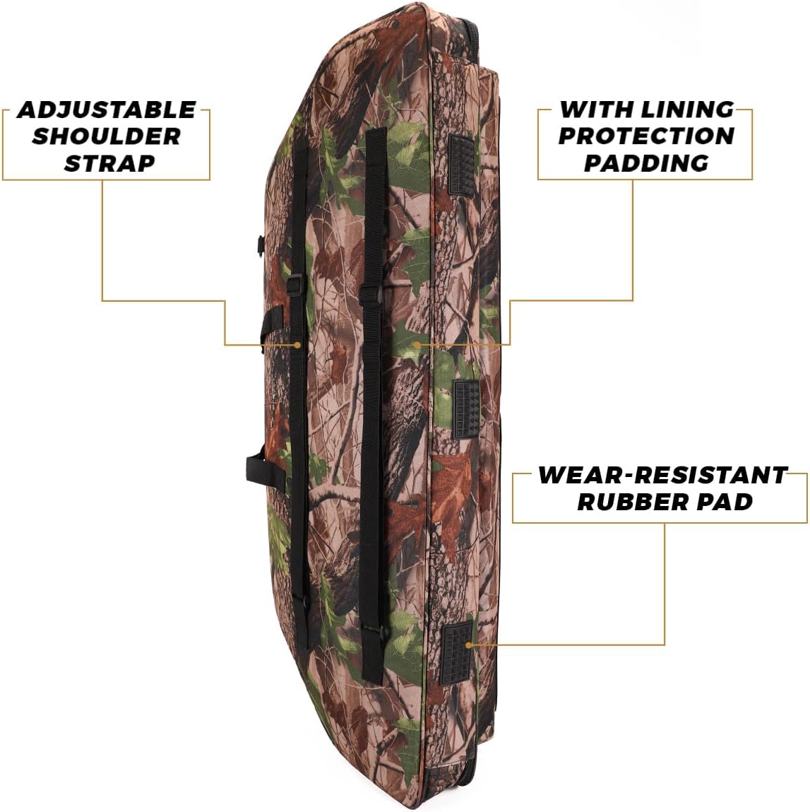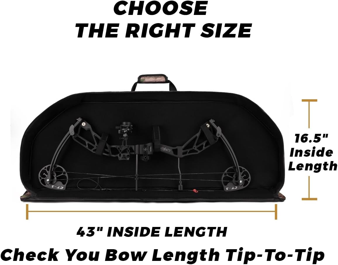 Product DetailsMaterial: Waterproof & wear-resistant nylon + shock absorbing foam paddingSize: 43"x16.5" Inside LengthArrow Pocket Size: 40" LengthFeatures: Lightweight and easy to carry, full padding protection,large arrow pocketCondition: New itemPackage includesCompound bow bag*1Adjustable shoulder strap*1