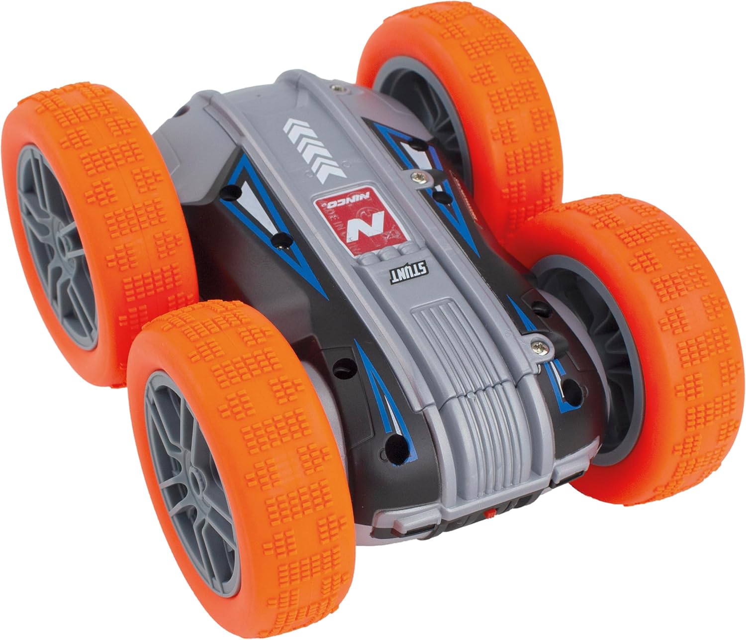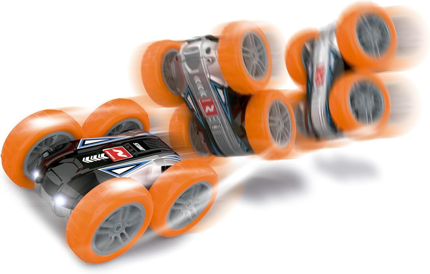 Reversible RC STUNT vehicle with rubber tyres for amazing stunts. With lights that allow you to play even in the dark. 2.4 GHz transmitter
