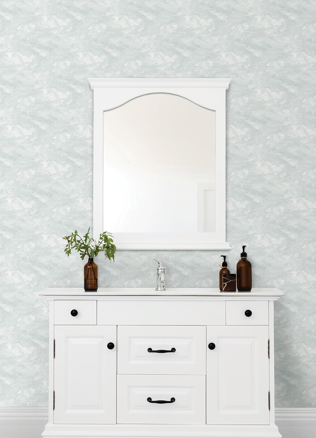 Create an airy and dimensional space with this peel and stick wallpaper. Textural raised inks create the look of a light blue and white overcast sky. Blue Declan Peel and Stick Wallpaper comes on one roll that measures 20.5 inches wide by 18 feet long.
