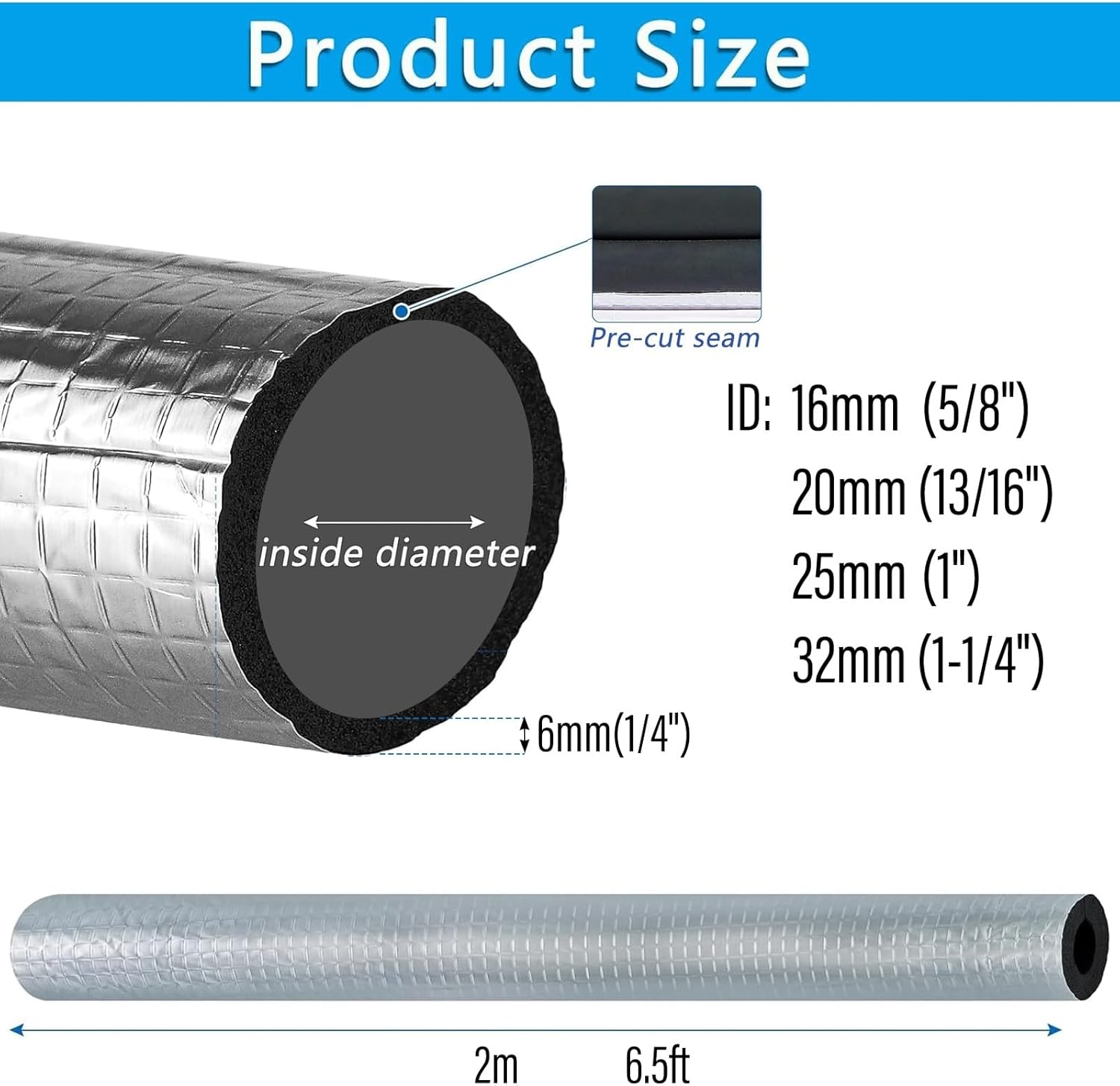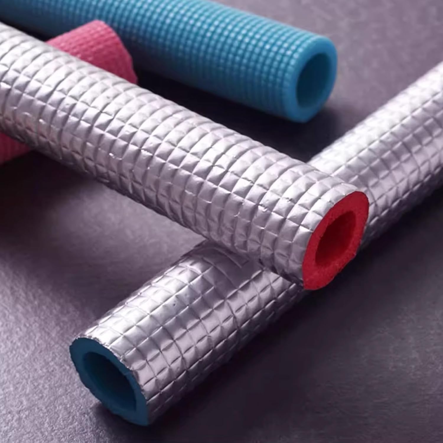 Introducing our premium foam pipe insulation, designed to deliver exceptional energy efficiency and protection for your plumbing needs. Made from 6mm cross-linked high-density foam, this insulation outperforms standard heat tape, ensuring your water pipes are safeguarded against freezing in winter and condensation in summer. The durable aluminum foil outer layer effectively shields pipes from harsh weather conditions, making it an ideal choice for outdoor applications. Whether you’re insulating hot or cold water pipes in residential or commercial buildings, our product helps maintain optimal temperatures, preventing costly damage and energy loss. The flexible design allows for easy fitting on both curved and straight pipes, and the vibrant red and blue colors make it simple to distinguish between hot and cold lines. Key Features: 1. 6mm thick cross-linked foam for superior insulation and energy savings. 2. Aluminum foil exterior protects against wind and sunlight. 3. High-density foam offers excellent flexibility and resilience. 4. Color-coded for easy identification of pipe temperatures. 5. Effortlessly cut to size for a customized fit. 6. Designed for convenience in a variety of construction scenarios. Applications: - Insulating plumbing in homes and businesses to prevent freezing and cracking. - Enhancing the efficiency of HVAC systems by minimizing heat loss. - Protecting pipes in industrial settings, ensuring temperature control in chemical and power plants. - Maintaining cold chain integrity for refrigerated trucks and storage. - Insulating solar water heater pipes and underfloor heating systems for better heat retention. - Providing reliable protection for agricultural and greenhouse piping systems. Upgrade your pipe insulation today with our innovative foam solution and experience the benefits of improved energy efficiency and enhanced durability!