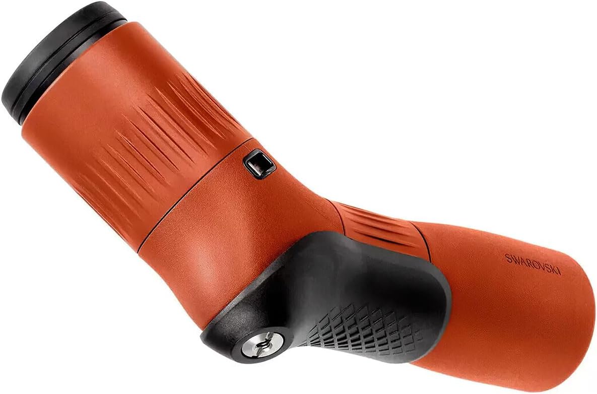 With small dimensions and outstanding optics thanks to its length of 11. 2 inches, the SWAROVSKI OPTIK ATC 17 to 40x56 Spotting Scope in orange color with an angled view will fit in any backpack. A weight of just 34.6 oz makes it a top choice for tours in rough terrain and remote areas. The clever half shell makes it easier to position on a surface without a tripod and allows unimpeded turning of the focusing and zoom wheel at all times. In combination with the VPA, the STC is ideal for digiscoping. The carrying strap adds the perfect finishing touch.