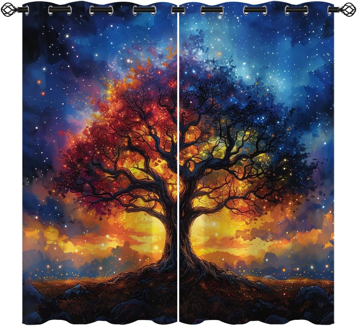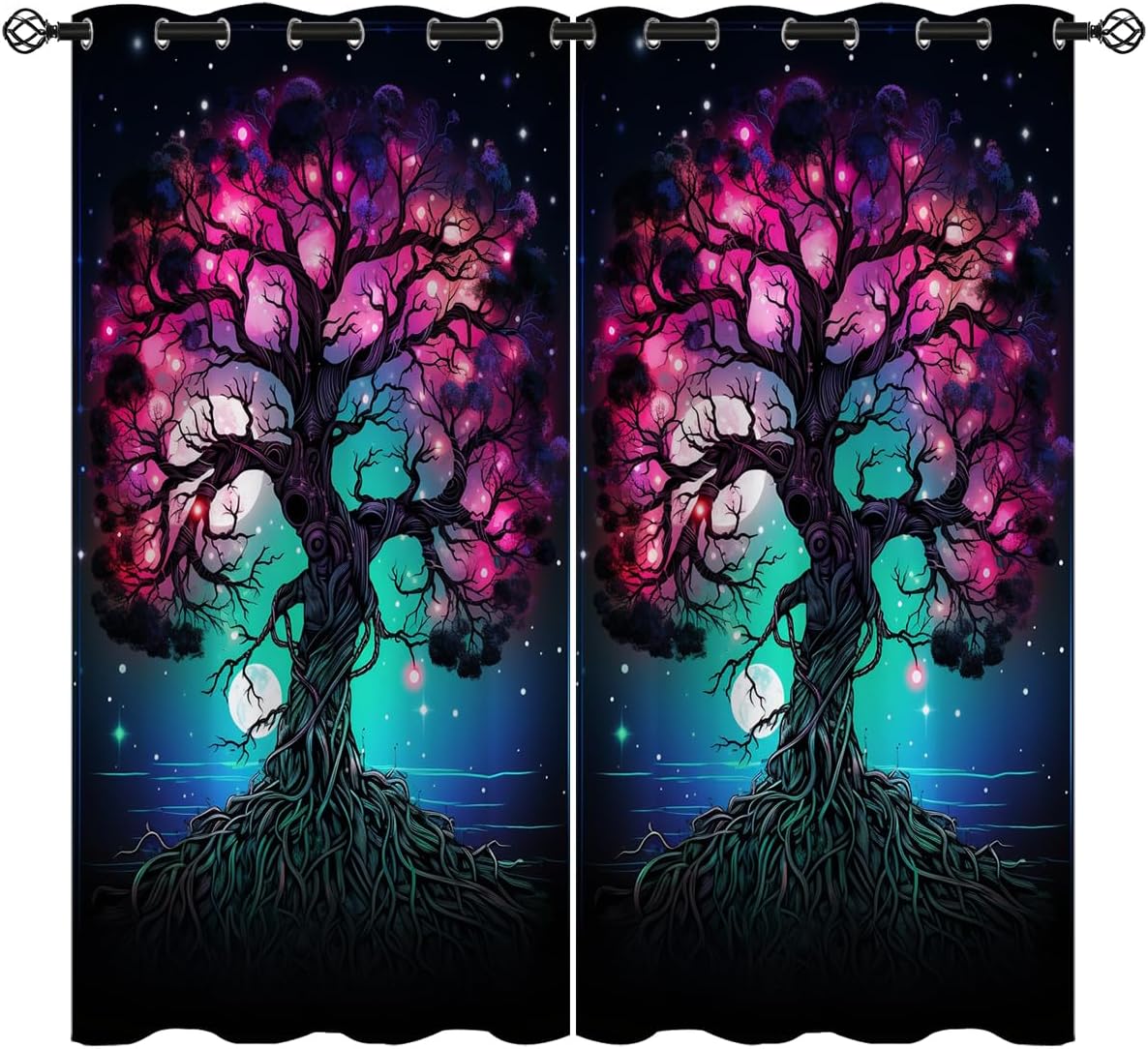 These print curtains are perfect for Living room, bedroom, kids room, kitchen, yard, patio, parlor, sliding door with Tree of Life, Indian Mandala Boho Hippie Psychedelic pattern.- Unique design:· Save energy costs by insulating against heat and cold.· Reduce noises from busy streets and high-traffic areas.· Protect furniture from sun damage and fading.· Provides complete privacy when needed· Perfect for any bedroom, office kids room and living room.- Package Included:· Blackout window curtains 2 Pcs set ( two panels).- Material:· Our Blackout Curtain Liners are crafted from a durable soft and thick triple weaved blackout fabric which can block out sunlight and UV rays. The darker color of the fabric, the more light it can block.- Easy Care Instructions:· Machine washable in cold water· Do not bleach.· tumble dry on low· low temperature ironing- Notes:· For your curtains to be more perfect, please choose a size 5-10 Inch larger than the actual window width.· here may be slight differences in colors on different displays. If you have any questions about the product, please feel free to contact us.