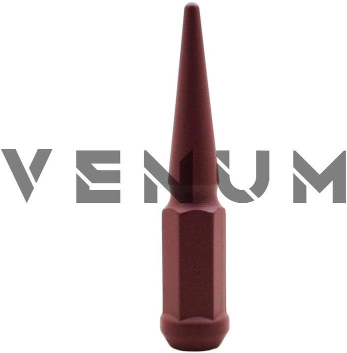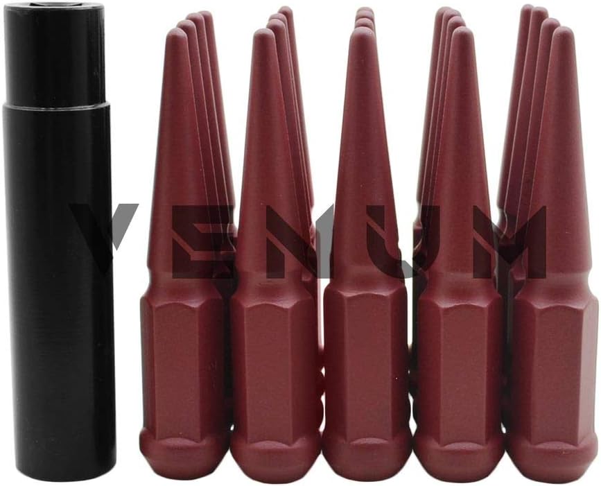 [ PRODUCT DESCRIPTION ] New 32 Pc Set of Flat Maroon "SOLID SPIKE Steel Lug Nuts. Fits all 14x1.5 vehicles with aftermarket wheels & conical seating. These lug nuts are not cheap ordinary lug nuts. Our lug nuts are powdercoated and made in house. We can customize any lug nut to any color. Spike Lug nuts are THE HOTTEST aftermarket lug nuts in the market. Made out of 10.9 Grade Steel, 1 Piece construction. These lug nuts require a special socket to install/remove them. At the same time it adds security to your wheels. Special key is included. [ COMPATIBLE WITH ] All Years Avalanche 1988-2000 C-2500 1988-2000 C-3500 1988-2000 K-2500 1988-2000 K-3500 1988-2019 Express Van 2500 1988-2019 Express Van 3500 1999-2019 Silverado 2500 HD 1999-2019 Silverado 3500 HD SRW & Dually 1999-2014 Suburban 2500 2003-2009 H2 2003-2005 Excursion 2003-2016 F-250 2003-2016 F-350 SRW & Dually 1988-2000 C-2500 1988-2000 K-3500 1988-2000 C-3500 1988-2000 K-2500 1999-2019 Savana 2500/3500 1999-2019 Sierra 2500 HD 1999-2019 Sierra 3500 HD SRW & Dually 2000-2019 Yukon XL 2500 2011-2020 Ram 2500 2011-2020 Ram 3500 & MORE [ IMPORTANT NOTES ] - Perfect For Aftermarket wheels - Will Work With Some Factory Wheels With Conical Seating Lug Holes (310) 763-0028