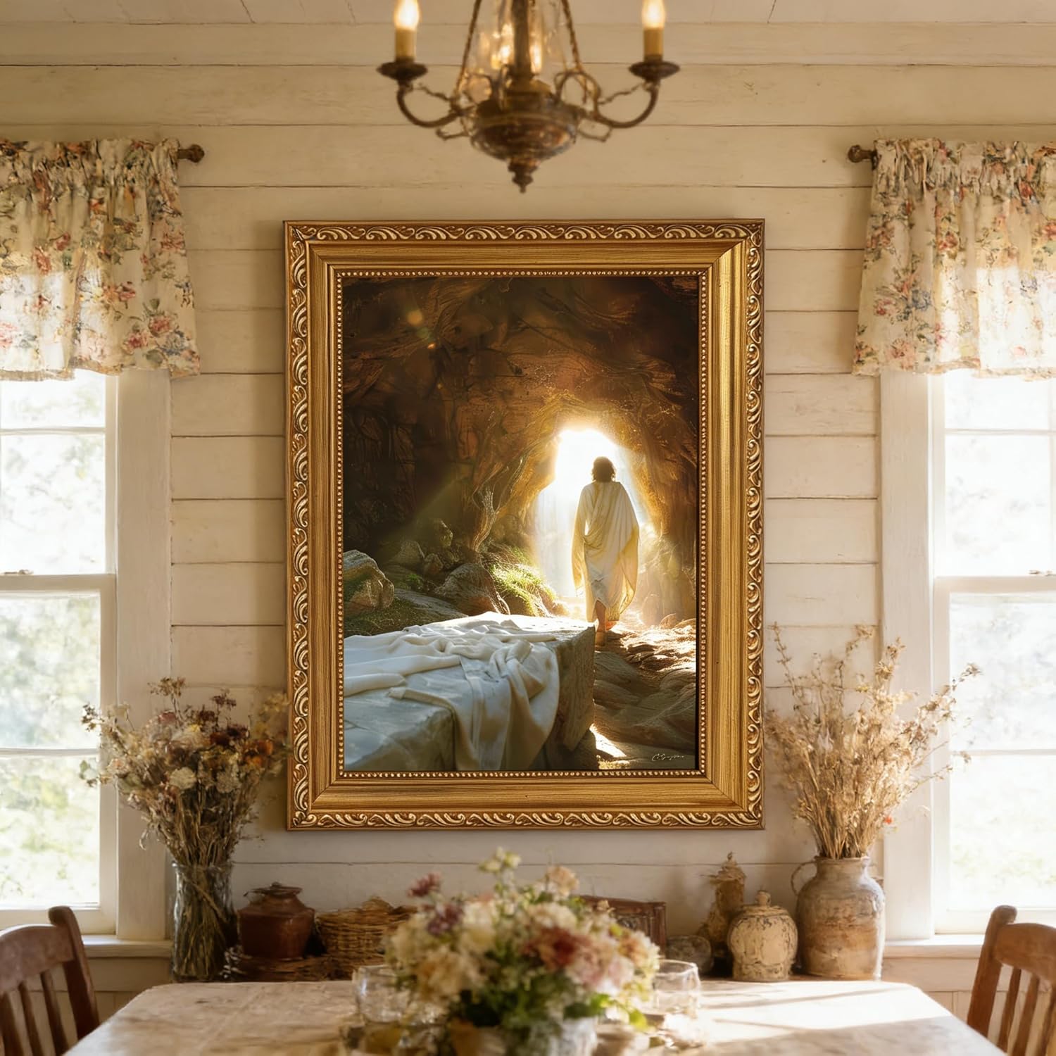 Gold Framed wall art Vintage Gold Framed Jesus Wall Art jesus Leaves the Tomb wall art jesus Resurrection wall art