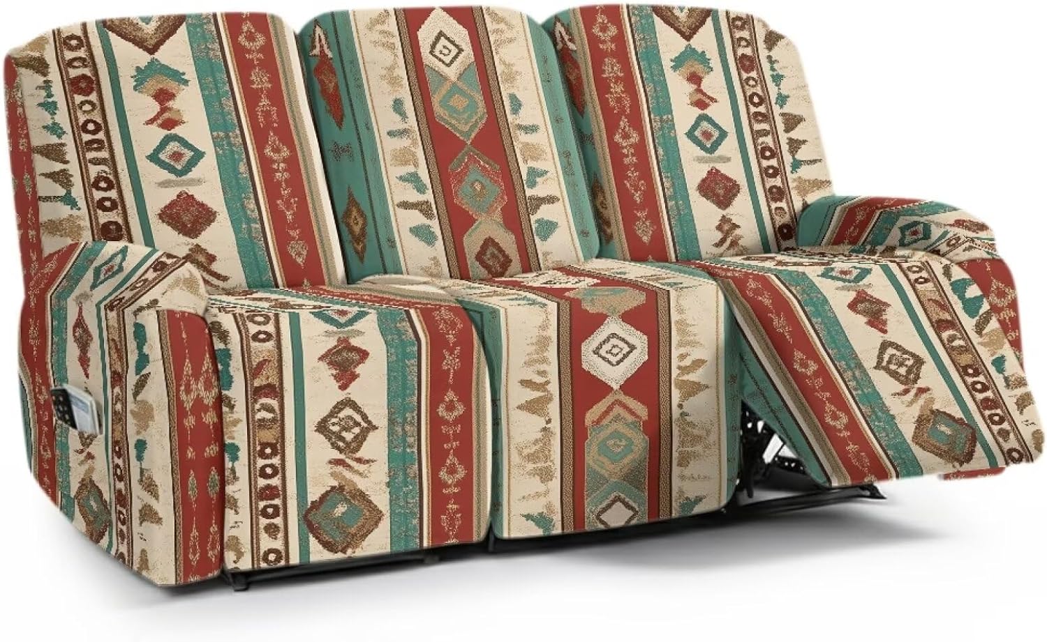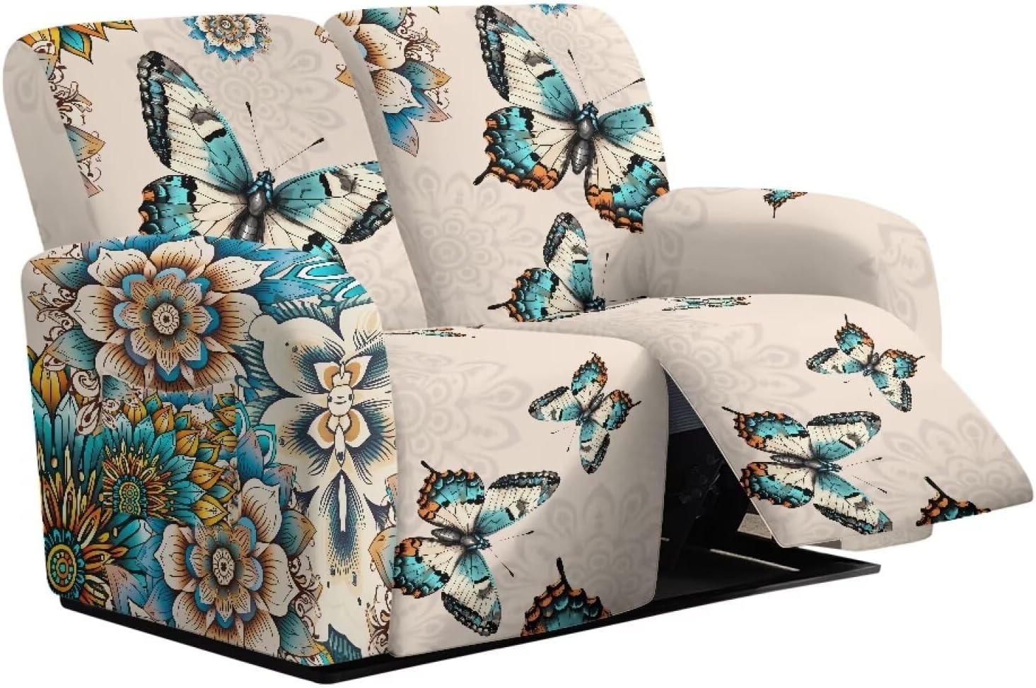 Recliner Chair Covers Material Made of premium quality polyester and spandex is comfortable and sturdy. No fading. Size: 1 seater: back width 27-37 inch, height 30-41inch, bottom width 23-25 inch, side width 26-35 inch 2 seater back width 48-66 inch, height 30-40inch, bottom width 26-36 inch, side width 24-37 inch 3 seater back width 69-91 inch, height 30-40inch, bottom width 26-36 inch, side width 24-37 inch Features Keeping your sofa recliner clean and free from dust and smudges. A variety of print designs to choose from. The perfect chair decoration. Easy to clean and machine washable.
